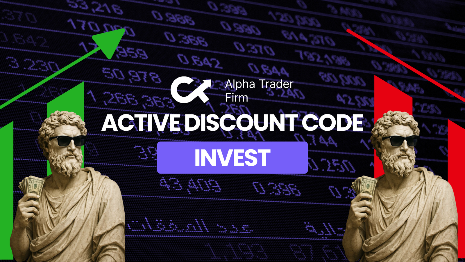 Yes, use code INVEST for 45% off all challenge purchases. This is currently the highest available discount for Alpha Trader.